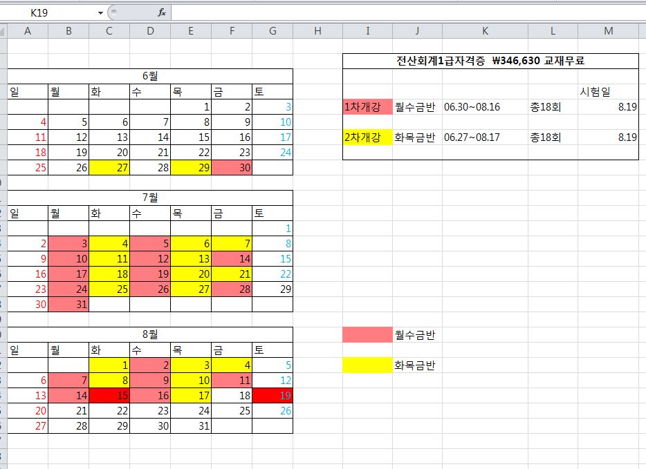 6월 근로자카드 전산회계 평일 주말반 일정